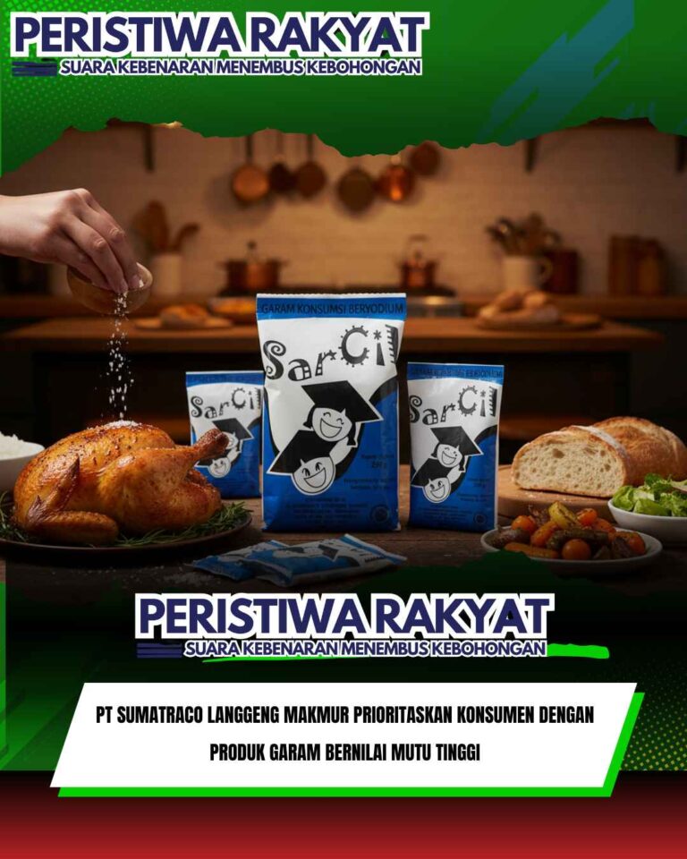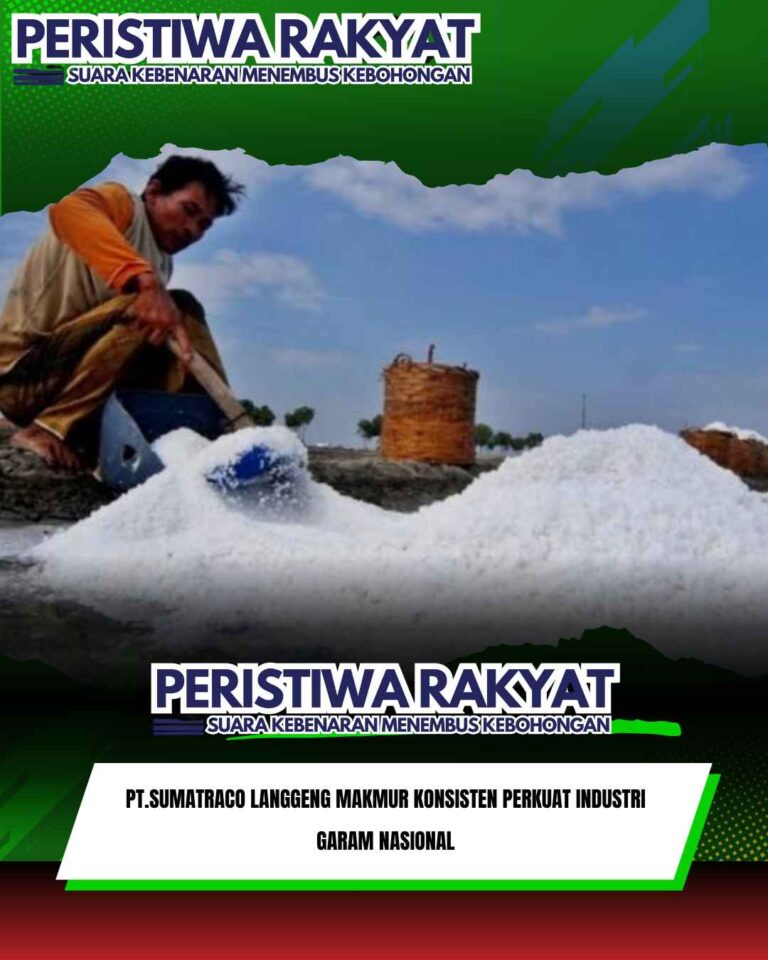 www.peristiwaRakyat.com.ǁSurabaya,4 Februari 2026-Di balik pemenuhan kebutuhan garam nasional, terdapat rangkaian proses produksi yang panjang serta komitmen kuat terhadap mutu. Hal tersebut menjadi prinsip utama yang terus dijaga oleh PT. Sumatraco Langgeng Makmur sebagai pelaku industri pengolahan garam nasional yang berorientasi pada penguatan daya saing jangka panjang. Di tengah berbagai tantangan yang dihadapi industri garam dalam…