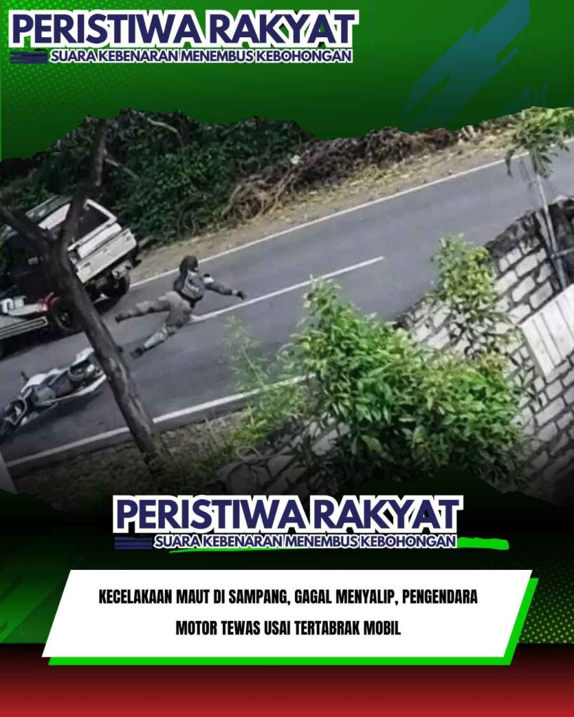 www.peristiwaRakyat.com.ǁSampang,24 Februari 2026-Terjadi kecelakaan maut di Sampang, Madura, yang merenggut nyawa seorang pengendara sepeda motor, Senin (23/2/2026). Kecelakaan yang melibatkan tiga kendaraan itu, tepatnya terjadi di Jalan Raya Slabayan, Desa Sejati, Kecamatan Camplong, Kabupaten Sampang. Insiden bermula saat sepeda motor Honda CB 150 R bernopol M 5741 CO yang dikendarai Moch Ubaidillah (26), melaju dari arah timur ke barat. Sesampainya di lokasi kejadian, korban berupaya mendahului…