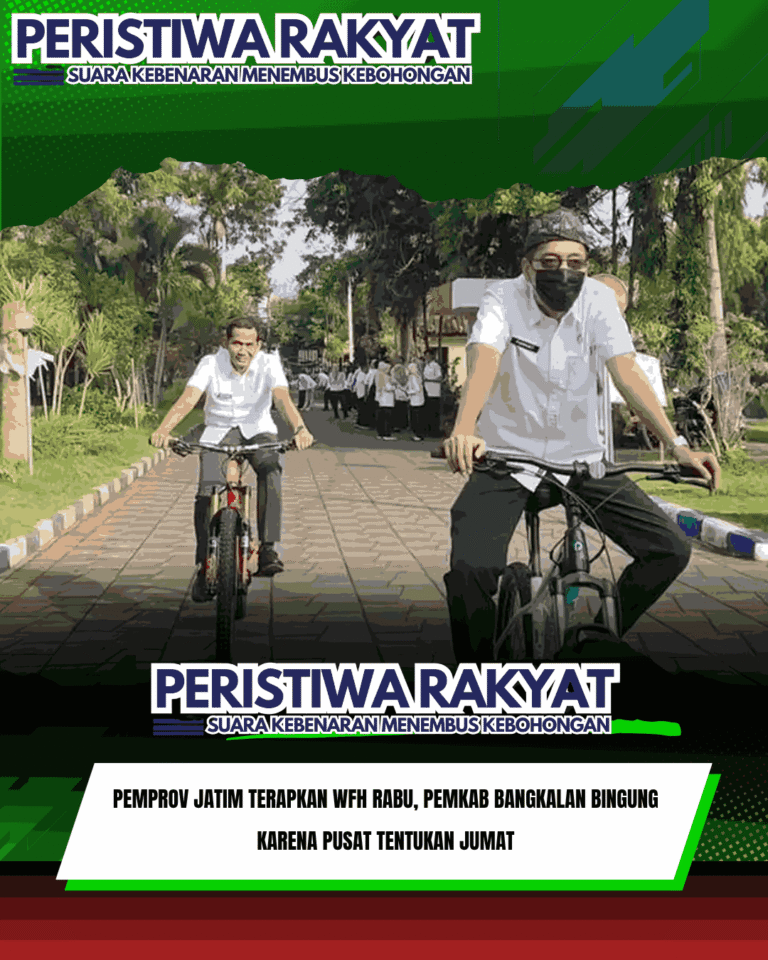 www.peristiwaRakyat.com.ǁBangkalan,2 April 2026-Pemkab Bangkalan masih melakukan kajian untuk menentukan hari berkaitan penerapan kebijakan bekerja dari rumah atau Work From Home (WFH) untuk para Aparatur Sipil Negara (ASN). Belum ditentukannya soal satu hari WFH dalam sepekan oleh Pemkab Bangkalan tidak lepas dari keputusan Pemprov Jawa Timur yang memilih Rabu sebagai hari WFH dan telah diterapkan pada pekan lalu. Wakil Bupati (Wabup) Bangkalan, Moch Fauzan Jafar mengungkapkan, Pemkab Bangkalan masih membahas tentang surat edaran…