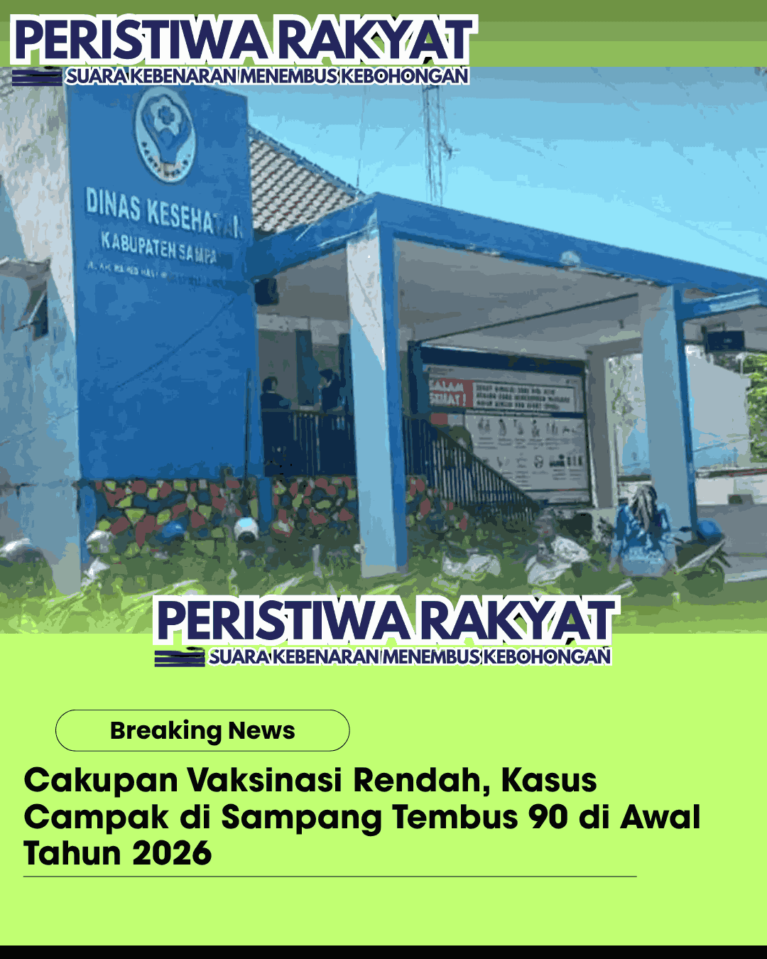 www.peristiwaRakyat.com.ǁSampang,14 April 2026-Rendahnya cakupan vaksinasi di Kabupaten Sampang, Madura, berdampak pada melonjaknya kasus campak yang kini telah mencapai 90 kasus di awal tahun 2026, Selasa (14/4/2026).
