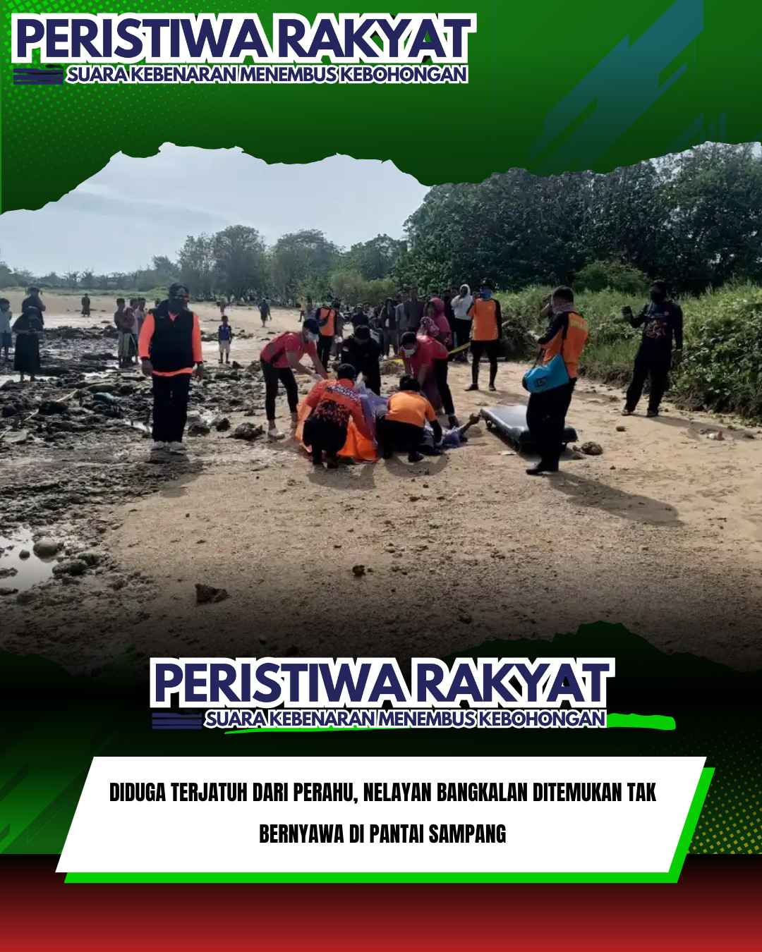 www.peristiwaRakyat.com.ǁSampang,1 Maret 2026-Warga pesisir pantai Dusun Dung Gadung, Desa Jatra Timur, Kecamatan Banyuates, Kabupaten Sampang, Madura digegerkan dengan penemuan jasad pria pada Minggu (1/3/2026) pagi.
