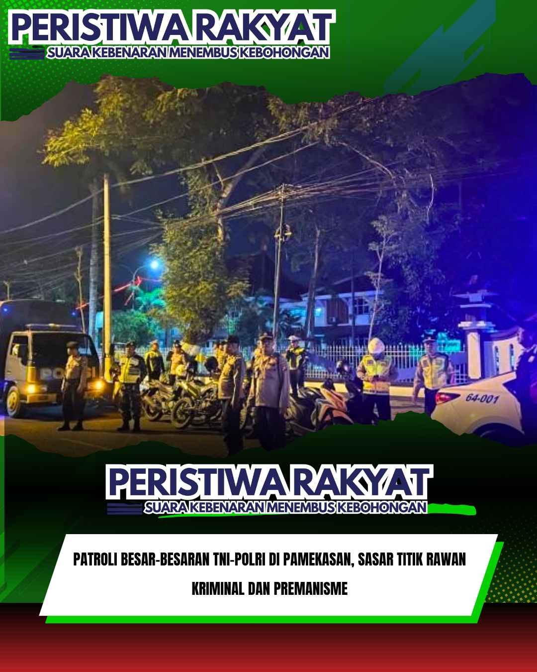 www.peristiwaRakyat.com.ǁPamekasan,30 September2025-TNI POLRI bersinergi menjaga keamanan warga Kabupaten Pamekasan, Madura, Selasa (30/9/2025) dini hari.