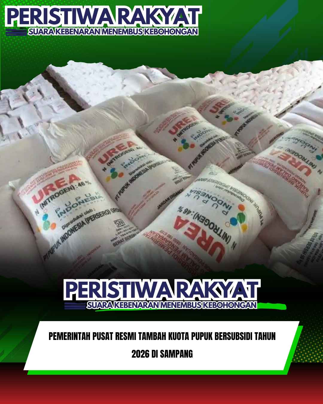 www.peristiwaRakyat.com.ǁSampang,10 Februari 2026-Pemerintah pusat resmi menambah kuota pupuk bersubsidi tahun 2026 di Kabupaten Sampang, Madura, dengan peningkatan signifikan dibandingkan alokasi tahun sebelumnya.
