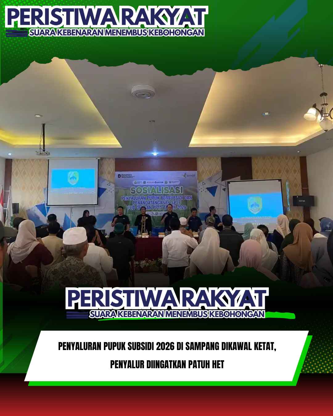 www.peristiwaRakyat.com.ǁSampang,24 Desember 2025-PT Pupuk Indonesia bersama Komisi Pengawasan Pupuk dan Pestisida (KP3) Kabupaten Sampang, Madura, menggelar sosialisasi penyaluran pupuk subsidi sekaligus penandatanganan Surat Perjanjian Jual Beli (SPJB) bagi Pelaku Usaha Distribusi (PUD) dan Penerima Pada Titik Serah (PPTS) untuk tahun 2026, Selasa (23/12/2025) siang.